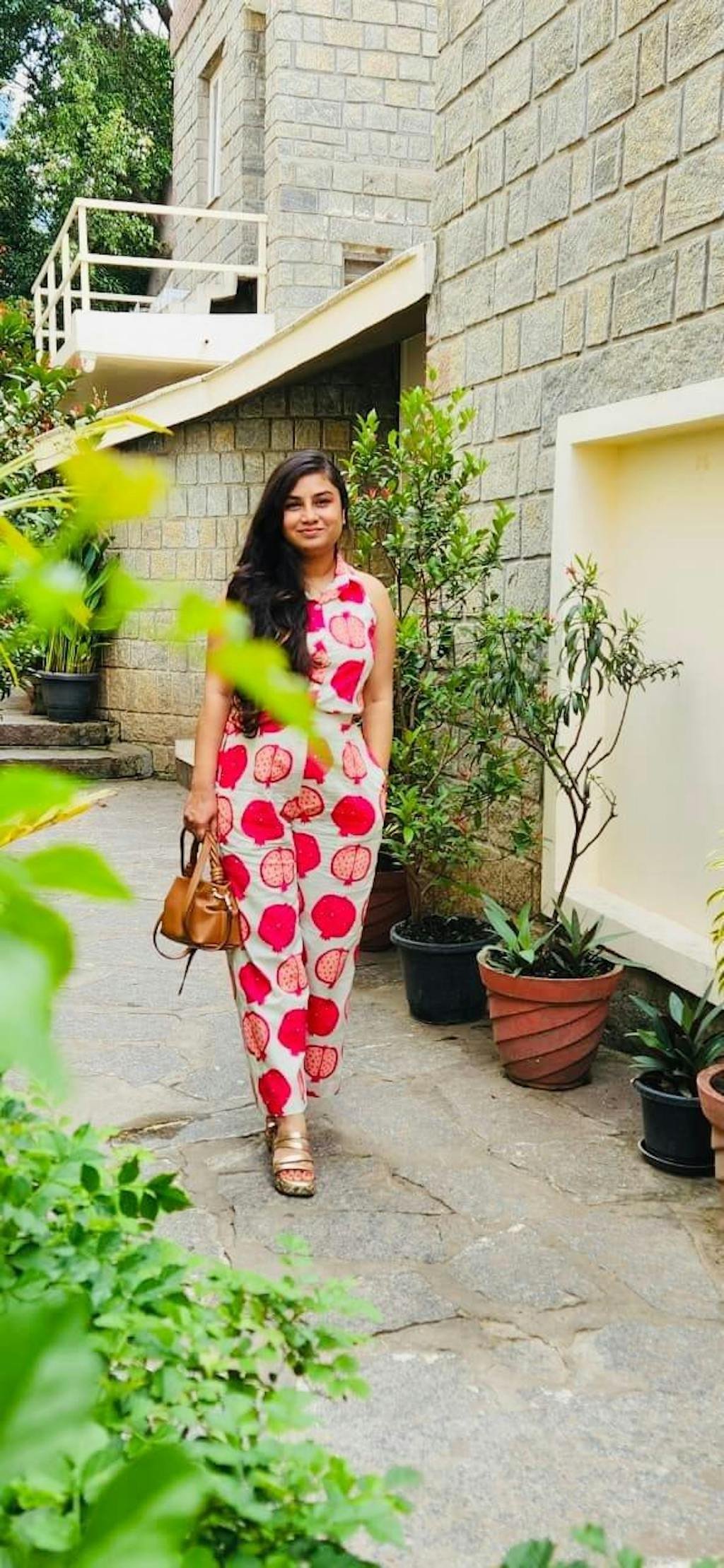 Made with lightweight, breathable cotton, it keeps you cool and comfortable all day long while the vibrant hand-printed pomegranate design adds a playful yet chic vibe.
